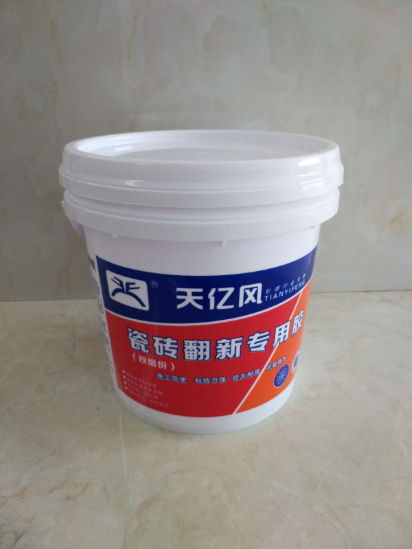 产品特点 双组份交瓷砖翻新专用胶是我公司自主研发的种由水性聚合物乳液、粉料组成的高档外墙功能与饰面材料。适用于各类瓷砖、马赛克、石材、涂料等旧饰面的翻新。 使用方法 基面清理:墙面应干净、结实、无空鼓、无粉化、无油渍及其它松散物。正确处理好表层对获得良好的效果至为重要。 搅拌混合:先将乳液按比例(1:2.3)加入容器中,然后慢慢的倒入粉料,同时电动搅拌成均匀无颗粒的膏糊状,静置5-10分钟,再稍做搅拌即可使用。如稠度太高,可添加清水。 注意事项 1.本品稍有沉淀分层,属正常现象,搅匀后不影响质量。 2.本品适宜在5-40℃的环境下使用,不能在雨天施工。 3.搅拌好的腻子应在2-3小时内用完。 4.腻子层一遍不可批刮太厚,超过3cm应分次批刮, 执行标准:GB 18583-2008